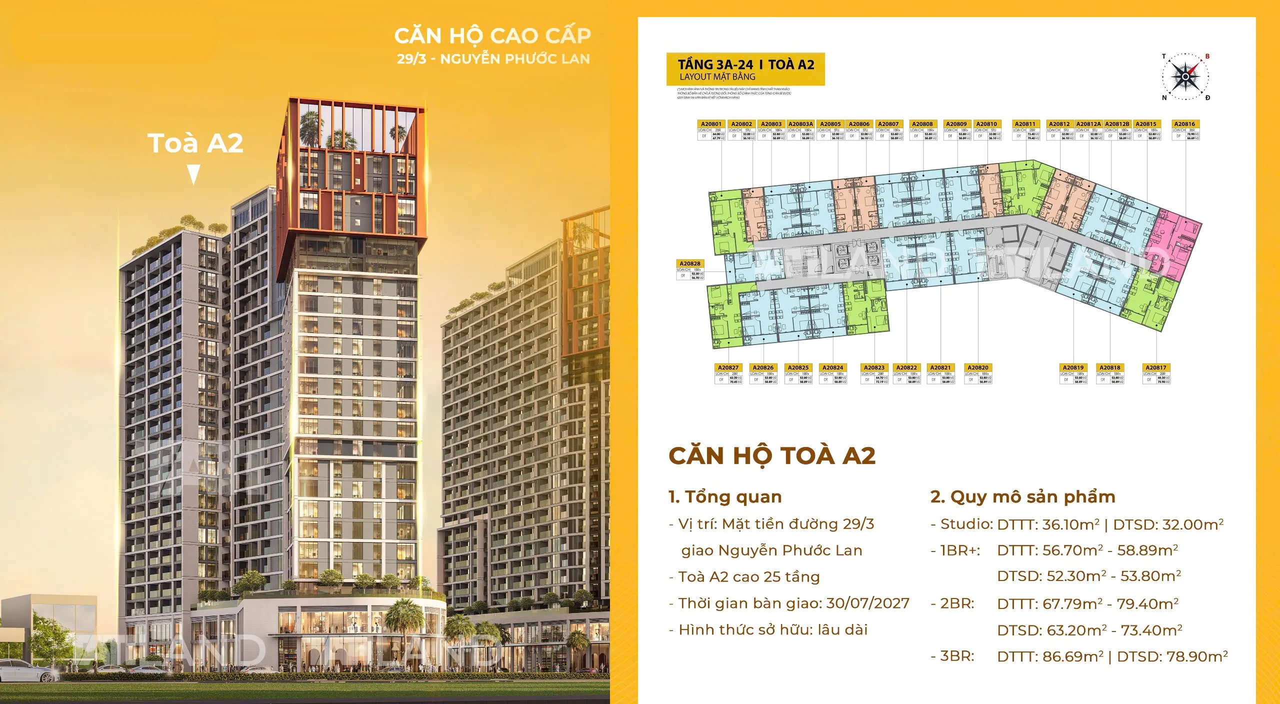 Sun Cora Tower gồm 2 tòa tháp A1 và A2, với mặt bằng được bố trí khoa học, tối ưu hóa không gian và tầm nhìn cho từng căn hộ. Các loại hình sản phẩm đa dạng, đáp ứng mọi nhu cầu từ đầu tư cho thuê đến an cư lạc nghiệp: